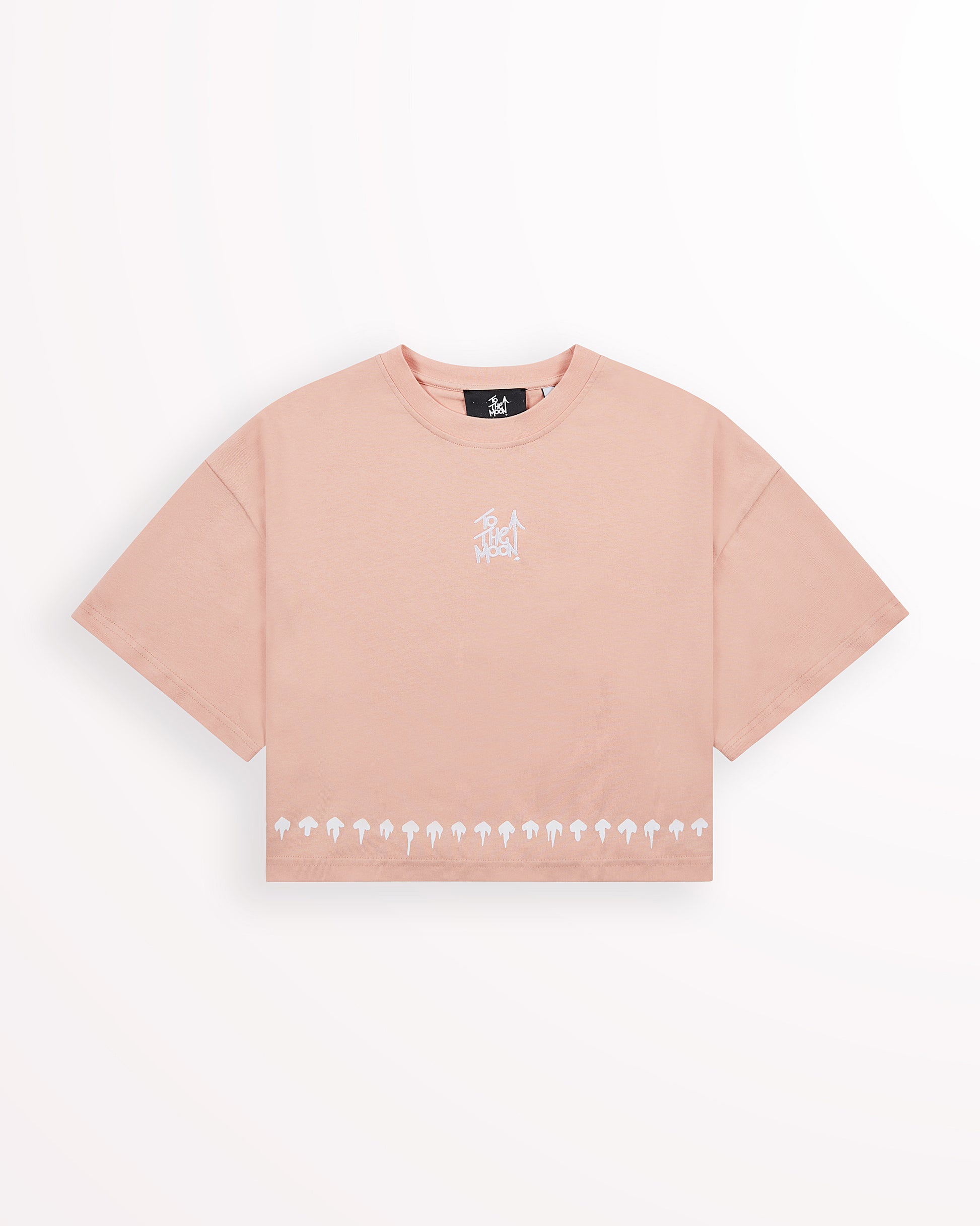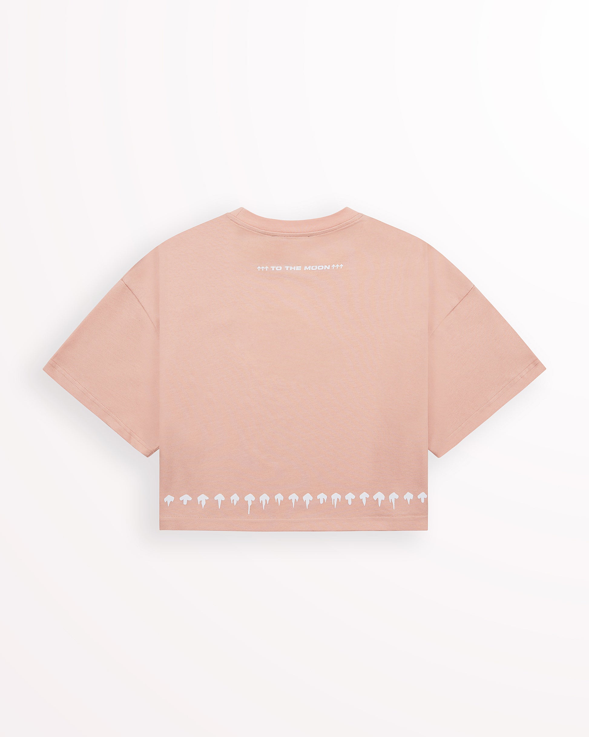 The To The Moon® Arrow Trim Crop Tee brings a fresh spin to streetwear staples with a cropped oversized silhouette. Crafted from 100% premium cotton in a soft Rose Dust tone, this tee blends comfort with elevated design details.